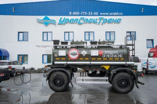Прицеп цистерна для ГСМ, 10 м3, 1 секция, 2 оси, двускатный, шины 12 R20, рессорная зависимая подвеска, насос, УВТ