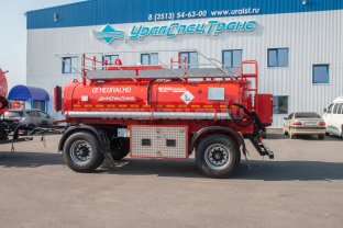 Прицеп цистерна для ГСМ, 10 м3, 1 секция, 2 оси,односкатный, шины 12 R20, рессорная зависимая подвеска, насос, УВТ, ППО-25