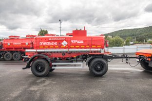 Прицеп цистерна для ГСМ, 12 м3, 2 секции, 2 оси, односкатный, шины 425/85 R21, рессорная зависимая подвеска, УВТ