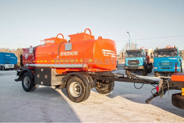 | Крепление цистерны | Ложементы емкости вварены в раму прицепа. Цистерна установлена в ложементах через резиновый демпфер и закреплена стяжными лентами. |