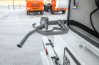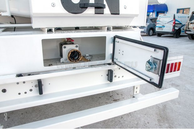 Доступ к люку наливной горловины осуществляется с площадки обслуживания, выполненной из просечного листа с противоскользящим эффектом. Также площадка обслуживания оборудована защитным ограждением. Складной механизм ограждения позволяет транспортному средству находиться в допустимых габаритах. Подъем на площадку обслуживания осуществляется по металлической лестнице, закрепленной в задней части прицепа-цистерны.