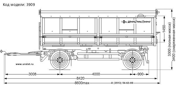 | Опрокидывающий механизм | Гидравлический, с приводом от гидросистемы тягача, гидроцилиндр телескопический |