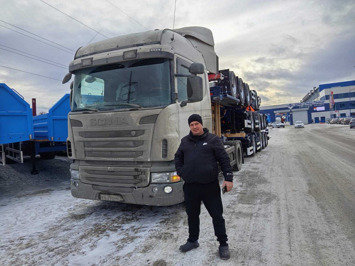 четырехосная, односкатная, пневматическая подвеска, две передние подъемные оси |