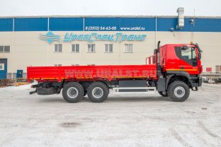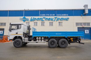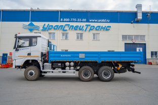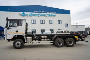 6х6, бортовой контейнеровоз, кабина Х3000 с одним спальным местом, ДВС WEICHAI WP12.430E50 (430 л.с.), КПП FAST GEAR 12JSDX220A-B, РК ZQС2000, шины 315/80R2,5, УВЭОС, Держатели для табличек, пеналы для огнетушителя, тахограф под ADR, кнопки отключения массы в кабине по ДОПОГ, наружная кнопка отключения массы по IP65, набор ДОПОГ, колпачки на клеммы АКБ