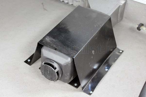 Автономный воздушный отопитель работает на дизельном топливе, упраление осуществляется автоматическим электронным блоком расположенным в пассажирском отсеке (возможна установка блока управления в кабине водителя).