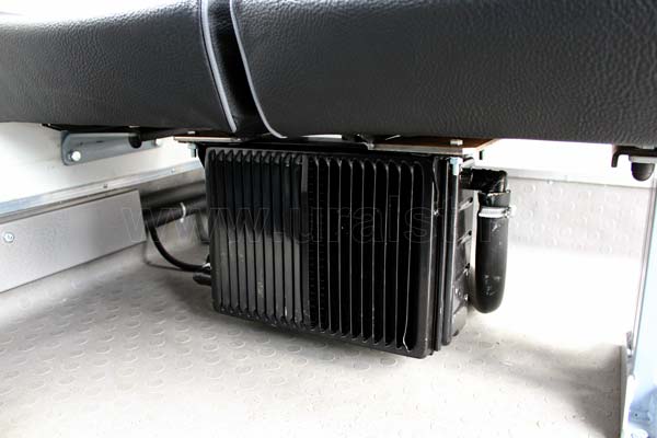 Основной контур отопления работает от системы охлаждения двигателя автомобиля. Обогрев салона осуществляется радиатором отопления расположенным под пассажирскими сиденьями.