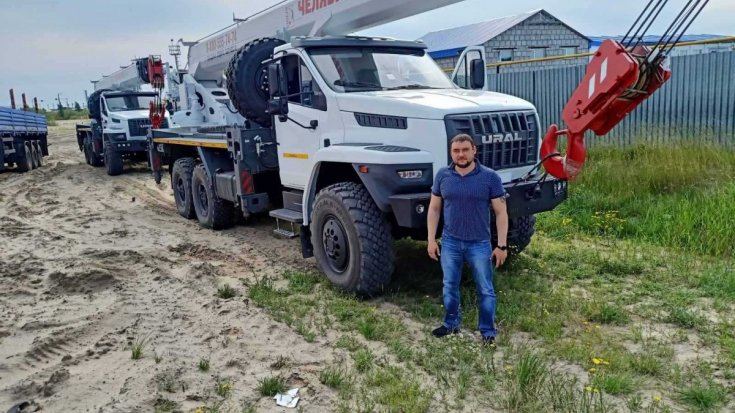Автокран Челябинец КС-55732 с четырехсекционной телескопической стрелой 33 м и грузоподъемностью 25 тонн. Четырехсекционная стрела изготовлена из высокопрочной стали.
