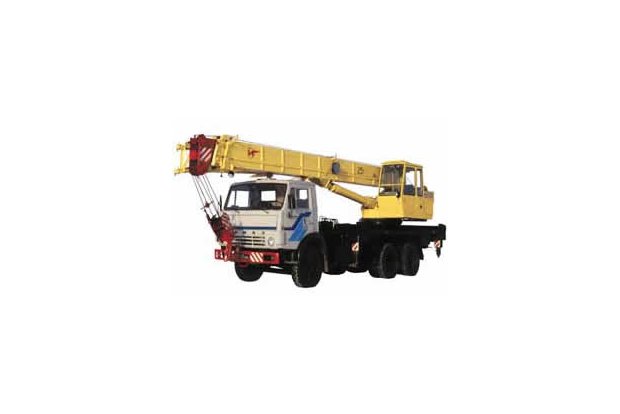 Автомобильный кран Ивановец КС 45717К-1, грузоподъемностью 25 т для работы с обычными грузами и грузоподъемностью 20 т для работы с ядовитыми и взрывоопасными грузами, смонтирован на шасси КамАЗ 53229.