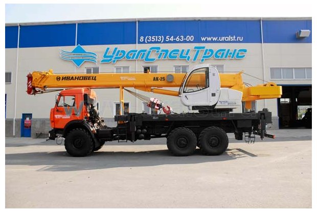 Автомобильный кран КС-45717К-3Р "Ивановец" грузоподъемностью 25 тонны смонтирован на вездеходном шасси Камаз 43118.