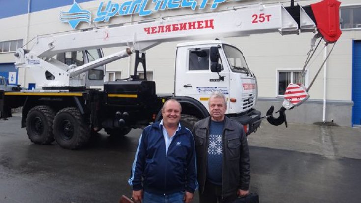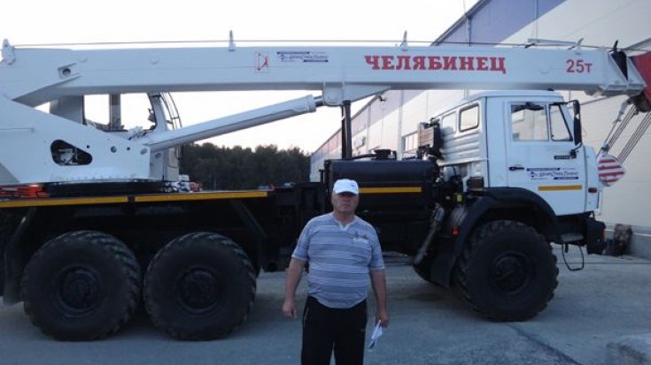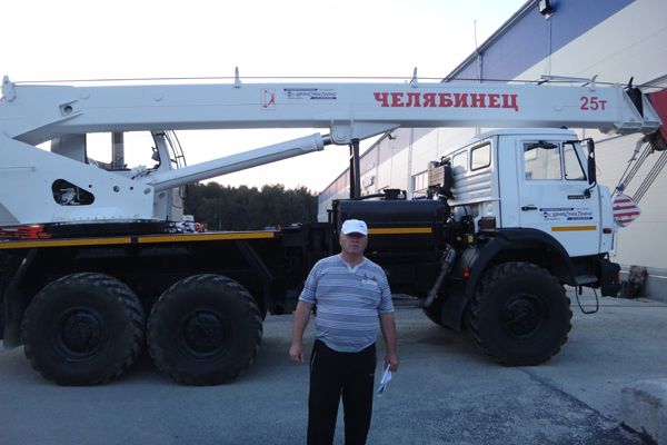 Автомобильный кран Челябинец КС 45721 грузоподъемностью 25 т предназначен для погрузочно-разгрузочных работ на рассредоточенных объектах.