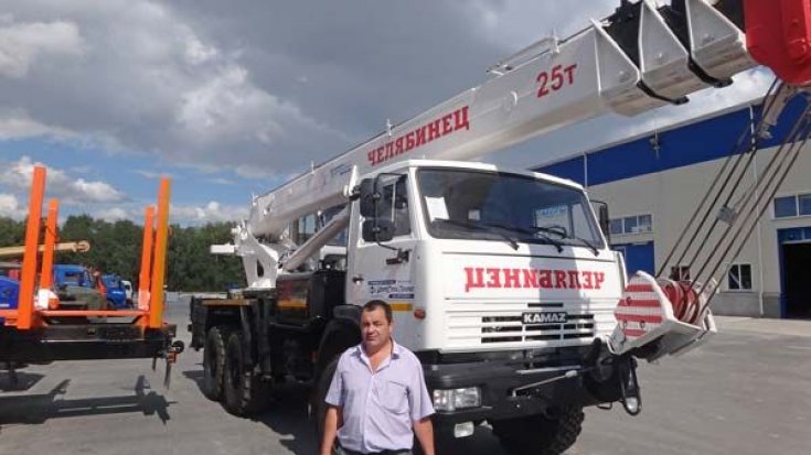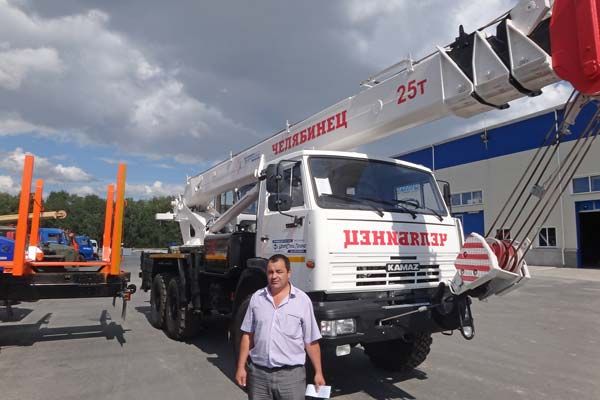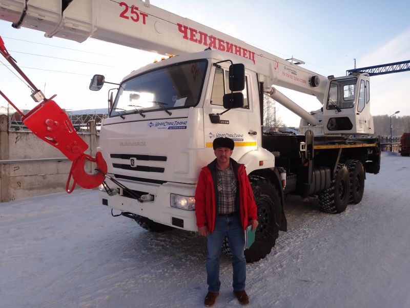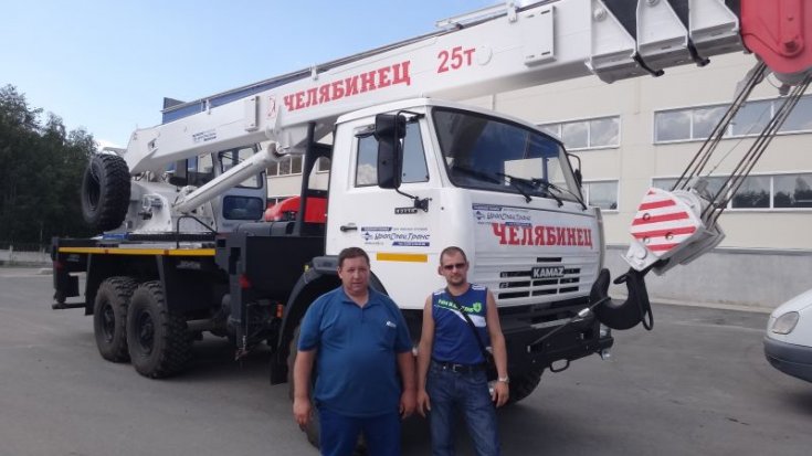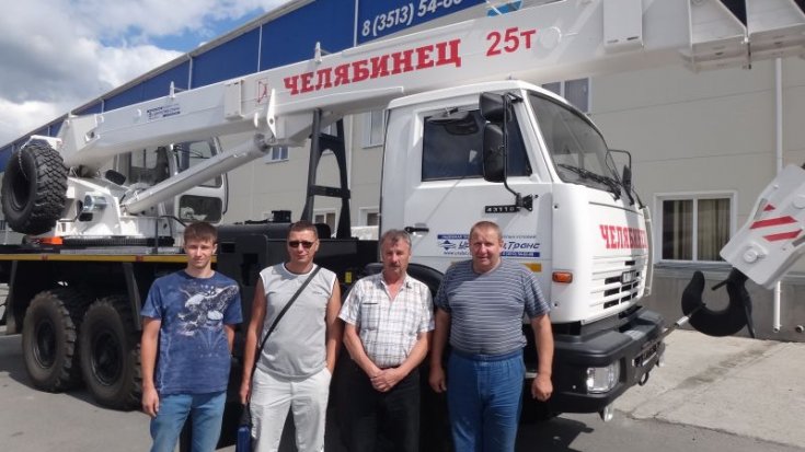 Автокран Челябинец КС-55732 с увеличенной четырехсекционной, телескопической стрелой 28,1 м и грузоподъемностью 25 тонн. Автокран базируется на вездеходном, полноприводном шасси Камаз 43118-46 (Евро-4), что обеспечивает его надежную работу в условиях бездорожья и районах Крайнего Севера.