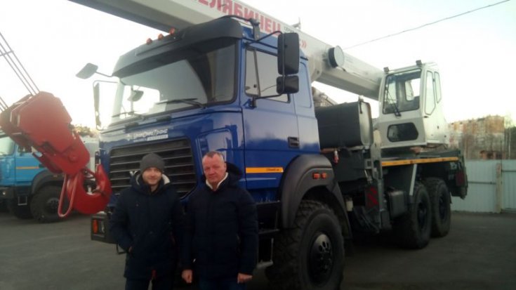 Автокран Челябинец КС-55732 с четырехсекционной телескопической стрелой 33 м и грузоподъемностью 25 тонн. Четырехсекционная стрела изготовлена из высокопрочной стали.