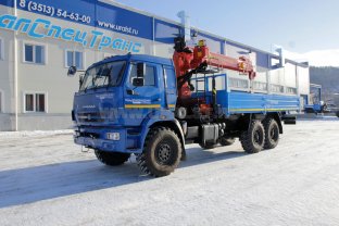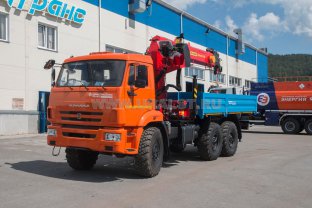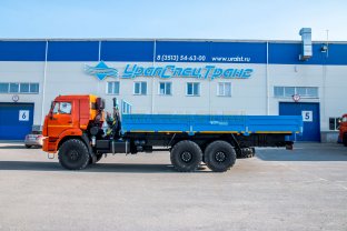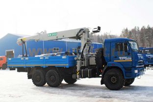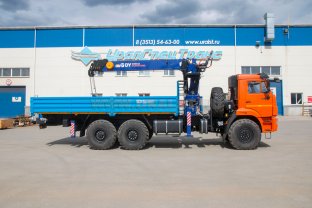 Бортовой автомобиль с КМУ ИТ-200 (20,2 тн/м, 7200 кг на 2,5 м, 18,90 м, тросовый, доп. опоры), бортовая платформа 6 м, 6х6, 300 л.с., дв. 740, КП 154, длинная база, спальное место
