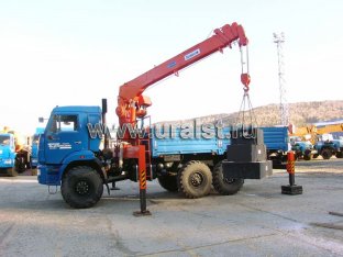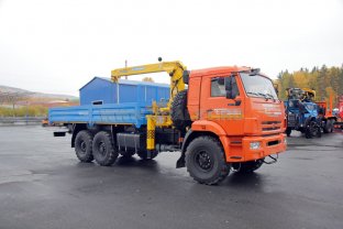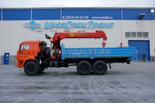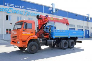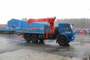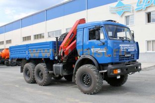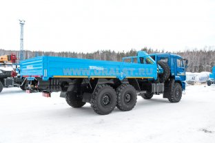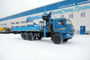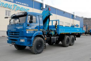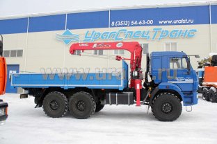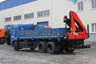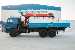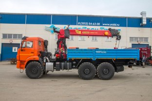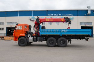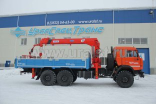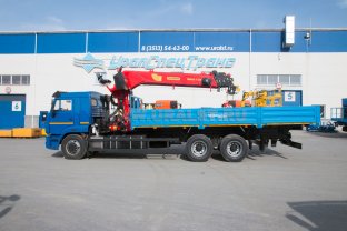 Бортовой автомобиль с КМУ ИМ-150 (12,10 тн/м, 6050 кг на 2,0 м, 8,40 м, опоры вниз неповоротные), бортовая платформа 6090 мм, высота бортов 1200 мм, 6х6, 300 л.с., дв. 740, КП 154, спальное место