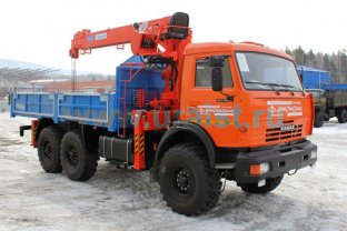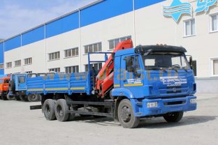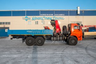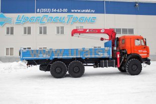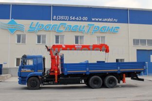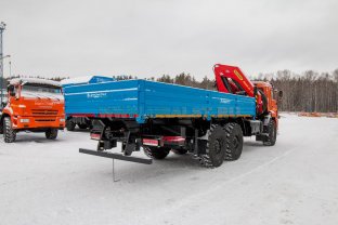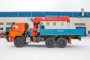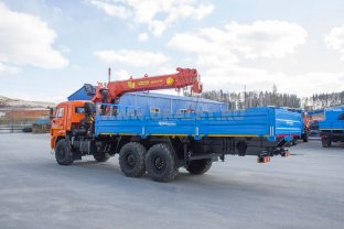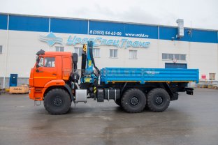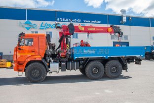 Бортовой автомобиль с КМУ ИМ-150 (12,10 тн/м, 6050 кг на 2,0 м, 8,40 м, опоры вниз неповоротные), бортовая платформа 6090 мм, 6х6, 300 л.с., дв. Камаз, спальное место