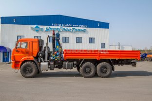 Бортовой автомобиль с КМУ Kanglim KS-1256G-II (15 тн/м, 7000 кг на 2,5 м, 18,7 м) с тросовой подвеской крюка, бортовая платформа 6 м, 6х4, 300 л.с., дв. КАМАЗ 667.511-300, КП 1310TO, спальное место