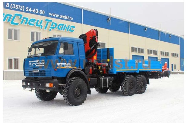 Бортовой автомобиль на шасси Камаз 43118-10 применяется для транспортировки грузов на бортовой платформе. Погрузку и разгрузку грузов на бортовую платформу автомобиль производит крано-манипуляторной установкой Palfinger PK-23500А, установленной за кабиной.
