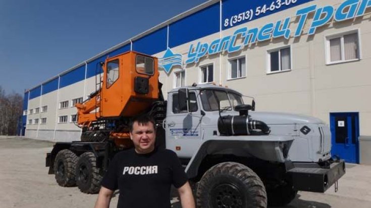 Погрузчик леса на шасси Урал 4320-1912-60/-70 предназначен для погрузки и разгрузки круглых лесоматериалов весом до 2 тонн. За кабиной погрузчика леса установлен гидроманипулятор СФ-140СТ, который позволяет поднимать хлысты или сортименты массой до 810 кг на полном вылете стрелы в 10 метров.