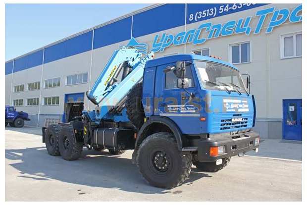 Седельный тягач Камаз 43118 предназначен для эксплуатации в составе автопоездов совместно с полуприцепами по всем видам дорог. На тягач установлен кран-манипулятор ИМ-240-04, обеспечивающий проведение грузоподъемных работ весом до 7 тонн.
