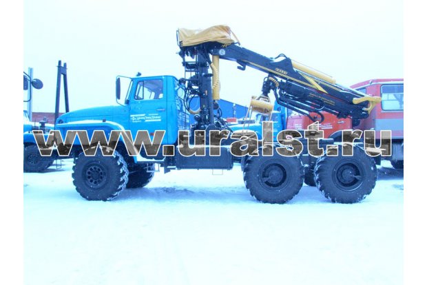 6х6, 230 л.с., Седельный тягач с ГМ ОМТЛ-97 (ПЛ-97) (9,7 тн/м, 2900 кг на 3,0 м, 7,3 м), для перевозки леса.