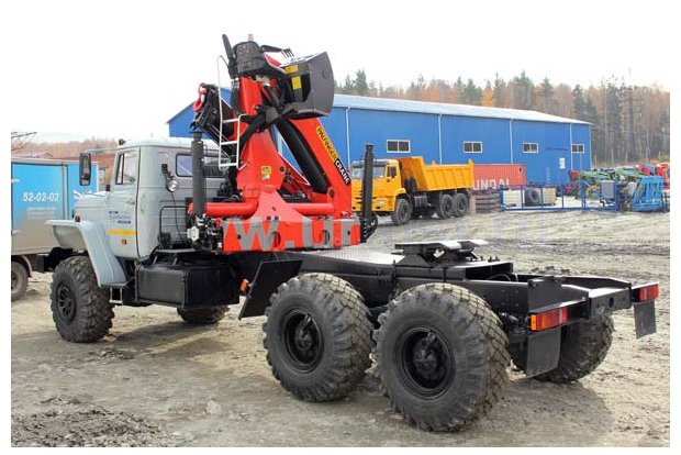 Седельный тягач Урал 4320 предназначен для эксплуатации с полуприцепом по всем видам дорог. На седельный тягач установлен кран-манипулятор Palfinger PK-23500А для погрузки, разгрузки различных грузов.