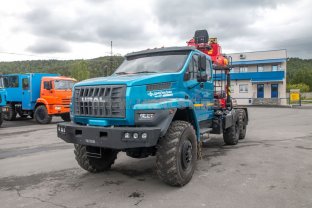 Седельный тягач с КМУ Kanglim KS-1256G-II (15,0 тн/м, 7000 кг на 2,5 м, 18,7 м), 6х6, 310 л.с., ЯМЗ-536, КП ZF9, Урал NEXT 4320-6981-74, сдвоенная кабина