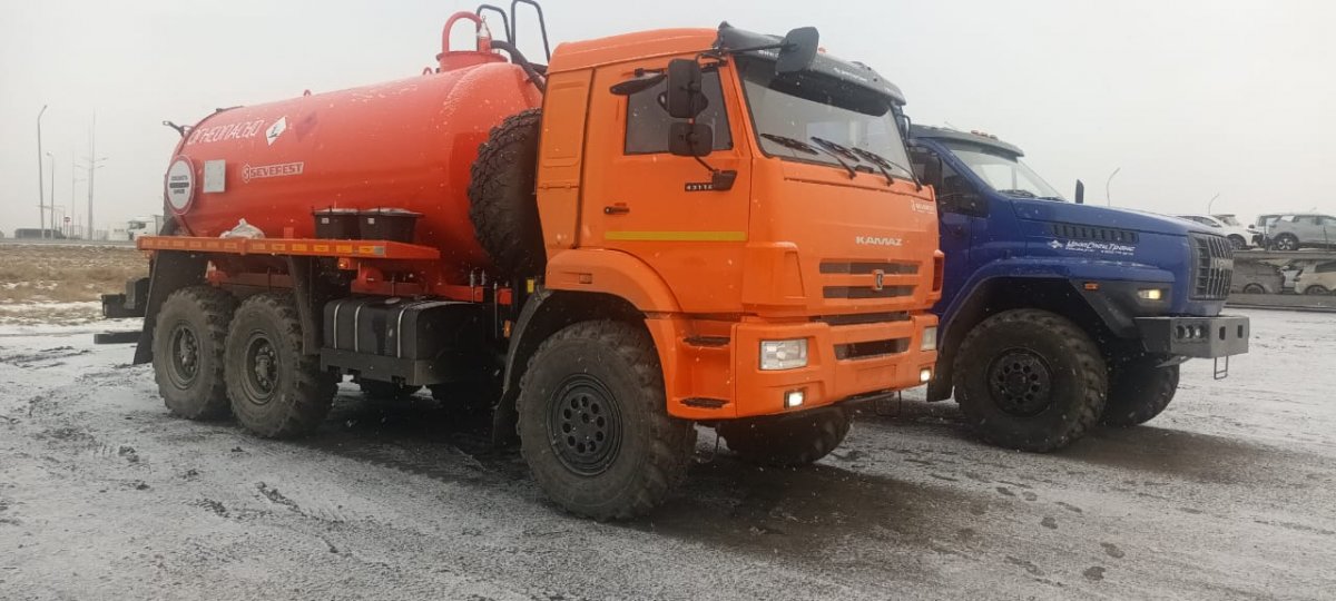 Нефтепромысловая автоцистерна АКН-10 КО УСТ 5453 на шасси Камаз 43118 предназначена для транспортирования разлитой нефти, газового конденсата, нефтепродуктов и неагрессивных технологических жидкостей, а также механизированного забора с поверхности грунта, транспортирования к месту утилизации и выгрузки разлитых жидкостей не содержащих горючих и взрывоопасных веществ.