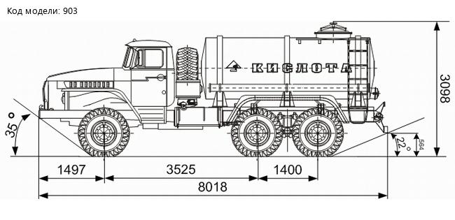 6х6, 7,2 тн, ЯМЗ-238М2, автоцистерна для перевозки агресивных жидких сред на шасси Урал 5557, АЦК 72