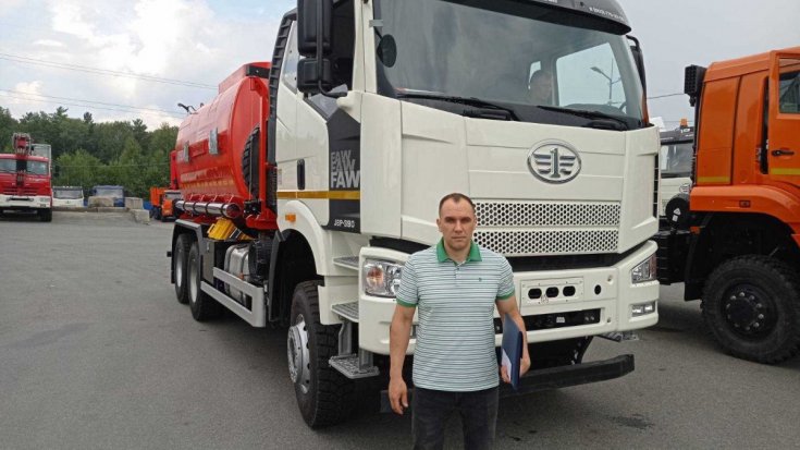 6х4, Автотопливозаправщик, 18 м3, два отсека, насос СВН-80, FAW 3250, ДВС CA6DM2, R6 (11,05 л.), 287 кВт (390 л.с.), КПП FAST 12JSD180TA, МОБ, МКБ, тормозная система с ABS WABCO, шины 315/80 R 22,5, кабина со спальным местом, кондиционер, сиденье водителя на пневматической подвеске, УВЭОС, Держатели для табличек, пеналы для огнетушителя, тахограф под ADR, кнопки отключения массы в кабине по ДОПОГ, наружная кнопка отключения массы по IP65, набор ДОПОГ, колпачки на клеммы АКБ