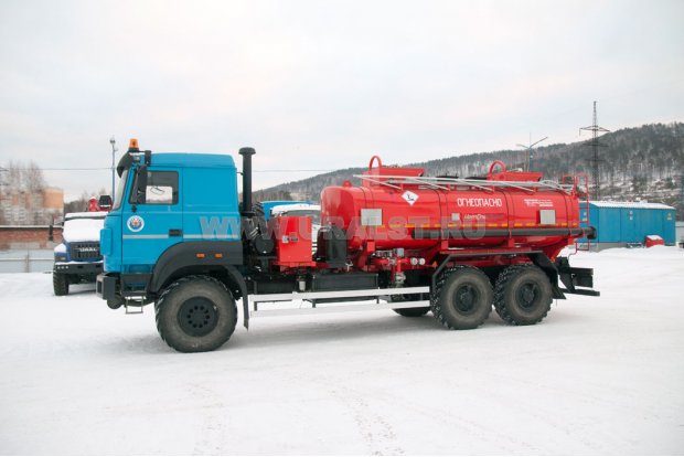 Автотопливозаправщик, полная комплектация, 12 м3, два отсека, два УВТ, боковое расположение УВТ, насос СВН-80, 6х6, 273 л.с., дв. ЯМЗ 536, КП ЯМЗ, бескапотный, спальное место, Держатели для табличек, пеналы для огнетушителя, тахограф под ADR, кнопки отключения массы в кабине по ДОПОГ, наружная кнопка отключения массы по IP65, УОС, набор ДОПОГ, колпачки на клеммы АКБ