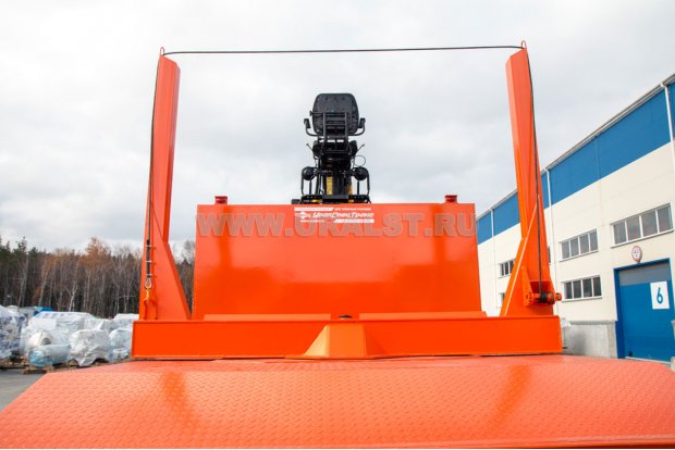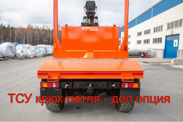 Лесовозный тягач УСТ-5453 с КМУ предназначен для погрузки, разгрузки и транспортировки хлыстов длиной до 23 метров в составе лесовозного автопоезда. За кабиной лесовозного автомобиля установлен манипулятор ОМТЛ-70-02 обеспечивающий проведение грузоподъемных работ весом до 1,79 тонн.