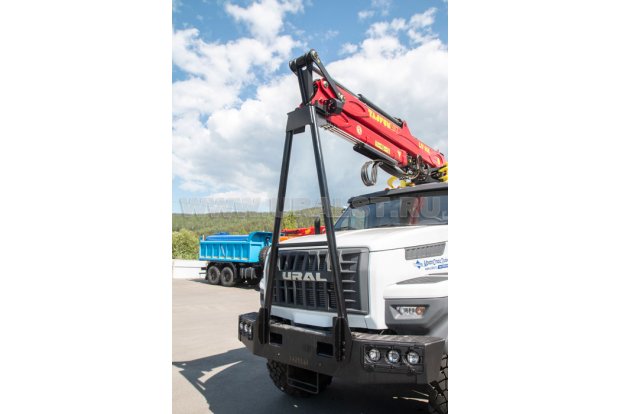 Автомобиль лесовоз на шасси Урал 4320-NEXT предназначен для погрузки, разгрузки и транспортировки хлыстов длиной до 23 метров в составе лесовозного автопоезда. Лесовозный тягач оборудован неоткидным коником.