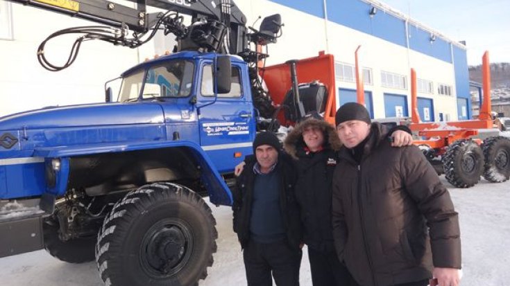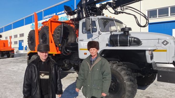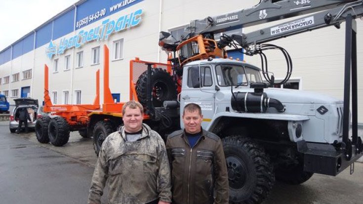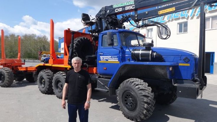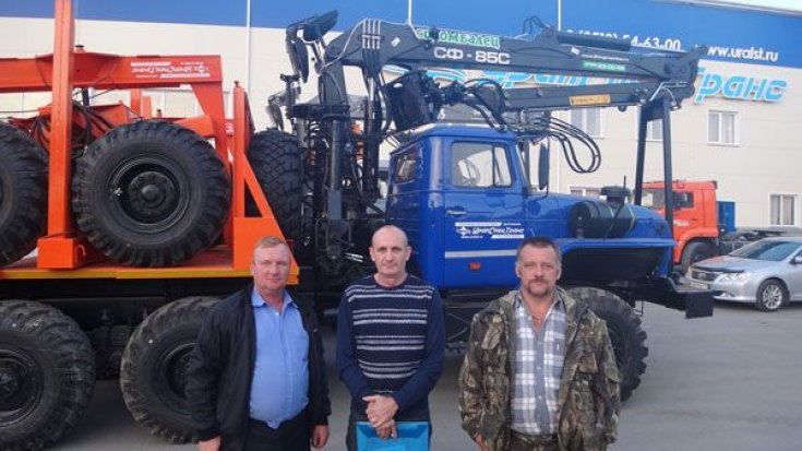 Лесовозный тягач Урал 55571-40 предназначен для погрузки, разгрузки и транспортировки сортиментов и хлыстов длиной до 23 метров в составе автопоезда по всем видам дорог и местности. За кабиной лесовоза смонтирован манипулятор СФ-85, обеспечивающий проведение грузоподъемных работ весом до 3,77 тонн.