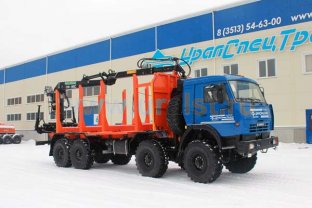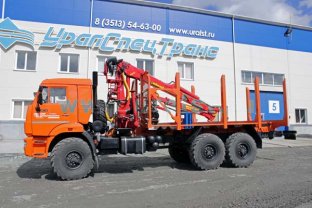 6х6, 8,5 тн, 6 м, 300 л.с., Камаз 43118-3098-50 с ГМ ОМТЛ-97 (9,7 тн/м, 2900 кг на 3,0 м, 7,3 м), сортиментовозная площадка под ГМ за кабиной, КП ZF, рестайлинговая кабина