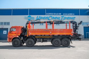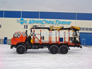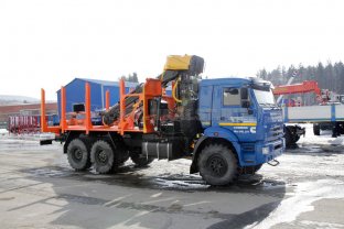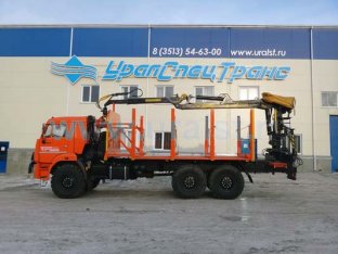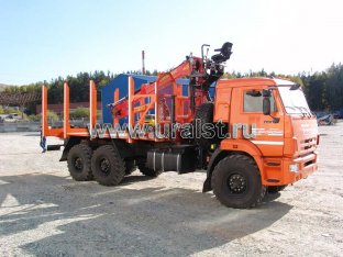 6х6, 8,5 тн, 6 м, 300л.с., Камаз 43118-3098-50 с ГМ ОМТЛ-97 (9,7 тн/м, 2900 кг на 3,0 м, 7,3 м), сортиментовозная площадка под ГМ на заднем свесе, КП ZF, рестайлинговая кабина