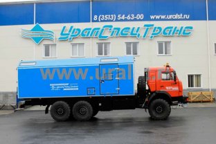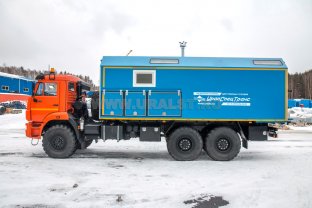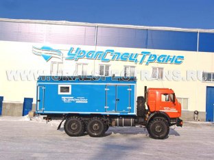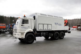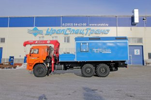Маслостанция с открытой грузовой платформой, КМУ Palfinger PK-6500 (5,7 тн/м, 3300 кг на 1,72 м, 5,6 м), 6х6, 310 л.с., дв. ЯМЗ, КП ZF, бескапотный со спальным местом