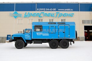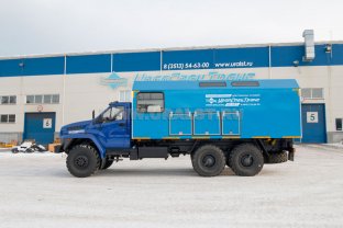 Маслостанция, КМУ Unic UR-V504 (12,42 тн/м, 3030 кг на 4,1 м, 10,84 м, с тросовой подвеской крюка), задние распашные двери, 6х6, 300 л.с., дв. 740, КП ZF9, спальное место