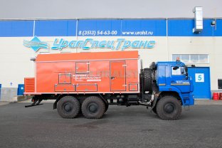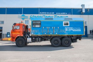 Маслостанция с открытой грузовой платформой, КМУ ИМ-95 (8,5 тн/м, 4000 кг на 2,1 м, 8,25 м), 6х6, 310 л.с., дв. ЯМЗ, КП ZF, бескапотный со спальным местом