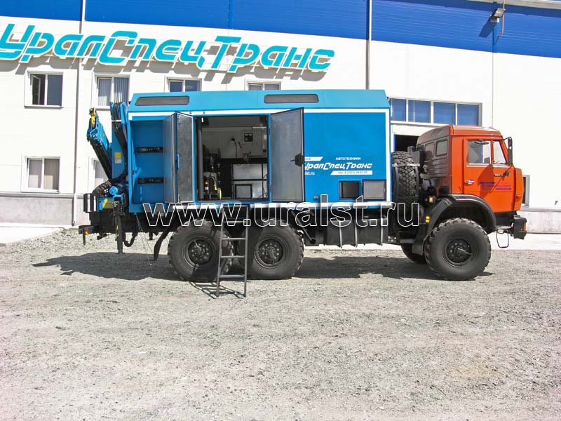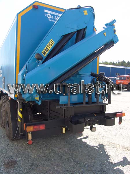 В хвосте автомобиля смонтирована краноманипуляторная установка ИМ-150 предназначеная для снятия и установки агрегатов машин и механизмов, погрузки их в кузов станции, а также для других погрузочно-разгрузочных работ.