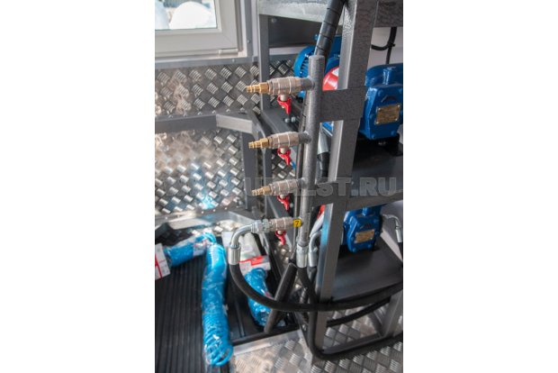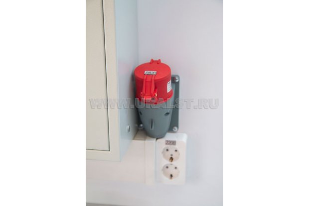 Напряжение 24В постоянного тока подается из электрической схемы базового автомобиля. Защита потребителей и цепей 380В и 220В от перегрузок и короткого замыкания обеспечивается соответствующими автоматическими выключателями и модулем защитного отключения установленым в электрошкафу.
