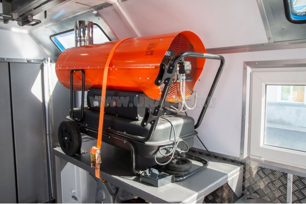 Кузов-фургон разделен на 2 отсека: рабочий отсек и пассажирский отсек. Отопление внутреннего пространства кузова-фургона осуществляется от автономного воздушного отопителя и отопителя от системы ДВС, которые обеспечивают комфортную работу при минусовых температурах.