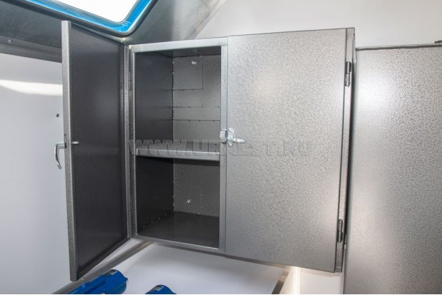 Для доступа к нишам кузова-фургона предусмотрена съемная лесница, которая в транспортном положении убирается под пол кузова-фургона, где также надежно фиксируется, чтобы исключить случайное раскладывание во время движения транспортного средства.