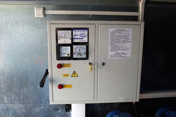 Защита потребителей и цепей 380В и 220В от перегрузок и короткого замыкания обеспечивается соответствующими автоматическими выключателями и модулем защитного отключения установленым в шкафу управления.
