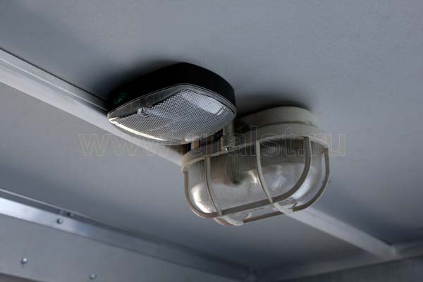 Напряжение 24В постоянного тока подается из электрической схемы базового автомобиля. Автофургон комплектуются необходимым количеством светильников: обычно используются пыле- и влагозащищенные люминесцентные светильники. Возможна установка специальных светильников, исходя из требований для различных классов пожаровзрывобезопасности помещений.