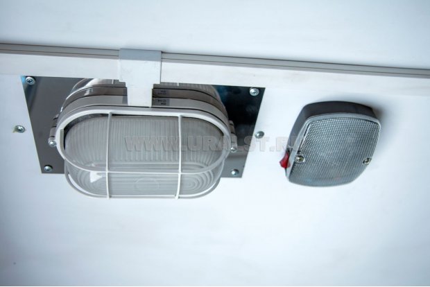 Напряжение 24В постоянного тока подается из электрической схемы базового автомобиля. Автофургон комплектуются необходимым количеством светильников: обычно используются пыле- и влагозащищенные люминесцентные светильники. Возможна установка специальных светильников, исходя из требований для различных классов пожаровзрывобезопасности помещений.