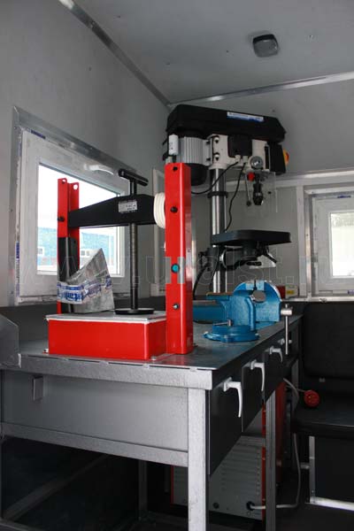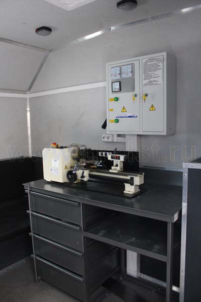 Планировка и расположение оборудования произведены с учетом максимально полезного использования пространства масерской и удобства работы персонала. Все оборудование и инструмент надежно закреплены на штатных местах.