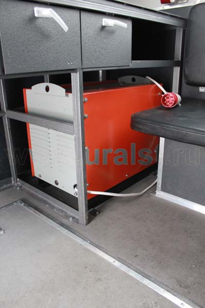 Кузов-фургон АРС оборудован специальными нишами, в которых размещены газосварочные баллоны. Также для быстрого доступа и удобства эксплуатации сварочного выпрямителя предусмотрен специальный люк.