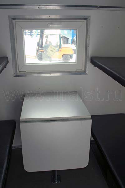 В левой панели фургона встроено окно-форточка, обеспечивающее естественное освещение, вентиляцию и необходимый обзор. Естественное освещение рабочего отсека осуществляется от окон расположенных на скосах фургона. Окна изготовлены с применением двойного герметичного стеклопакета из травмобезопасного стекла с уплотнителем толщиной 60 мм.