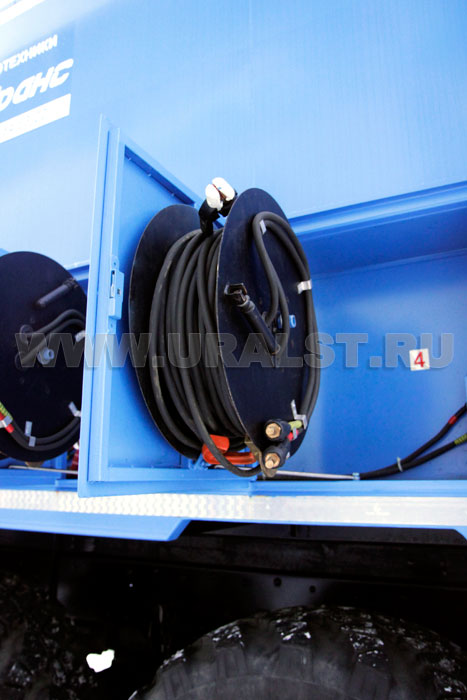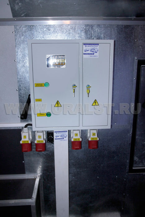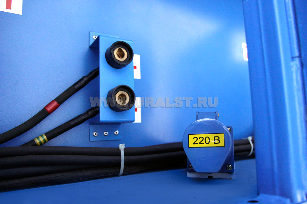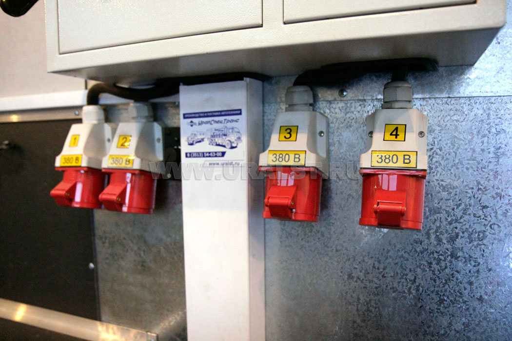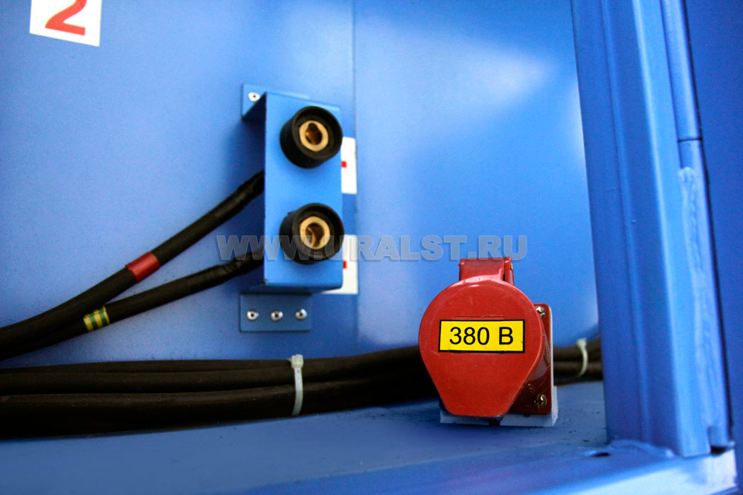 Питание оборудования передвижного сварочного комплекса может осуществляется от дизель-электростанции размещенной в кузове-фургоне или от внешнего источника питания, к которому предусмотрен специальный разъем.