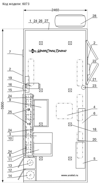 Агрегат ремонтно-сварочный УСТ оснащен аварийно-вентиляционным люком обеспечивающим большую проветриваемость отсека, в случае необходимости может использоваться как аварийно-эвакуационный люк.Наполнение загрузочного пространства